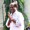 Rajinikanth gestures to fans during his 63rd birthday celebration organised outside his residence in Chennai. (PTI/R Senthil Kumar)