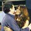 Actor Jackie Chan (L) embraces actress Mallika Sherawat during an audio release function of Tamil movie 'Dasavathaaram' in the southern Indian city of Chennai, April 25, 2008. (Reuters/Babu)