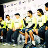 Zaheer Khan speaks as other cricketers look on during the unveiling of Team India's new training jersey in Chennai. (BCCL/B A Raju)