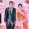 Vikrant and Jayshree pose for the shutterbugs during their marriage reception, held in Chennai recently. (BCCL/Praveen Tyagarajan)See more of :