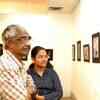 Guests check out the paintings on display at the Wild life exhibition. (Photo/V.Vinoth)