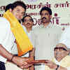 Chief Minister M Karunanidhi felicitates the member of World Cup winning team, Ravichandran Ashwin during a felicitation ceremony in Chennai on May 05, 2011.The Tamil Nadu government awarded a some of Rs 3 crore to the Indian team for winning the World Cup 2011. (PTI/R Senthil Kumar)