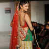 Prachi Desai presents a stunning traditional outfit designed by Asha and Gautam Gupta during their fashion show at The Park Hotel in Delhi.