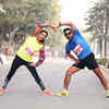 Nitika and Deval during a run organised by Ravinder Singh and a local playschool near Ambience Mall, in Gurgaon. (BCCL) /events/delhi/couples-run-in-gurgaon-for-valentines-day/eventshow/62881826.cms03