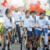Students of Modern School during Cyclothon 2014, an event organized by the school in association with the We Care Foundation, an NGO, in aid of a free dental and eye check-up camp.  (BCCL)