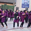 Anukriti group gets the winner's prize from Vani (L) at a street play competition at a city mall, where students from seven Delhi University colleges displayed their skills in the capital.