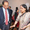 Azza Said Al-Maani (L) and Raoudha Laouani Azouz at an exhibition, Infusions - Tea Bags Unlimited, hosted by Alka Mathur in Delhi.  (BCCL/Dinesh Bhatt)