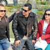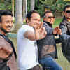 Arvind Thakur (second from left), Nila (second from right) and Parvin Dabas (extreme right) at the shooting of the Bollywood film 'Love Is Not Mathematics' by Nila Madhab Panda, a love story.  (BCCL/Nitin Malik)