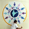 A student paints the finishing touches on the mural on unity in diversity at a wall in the Gurgaon DC office. (BCCL/Ranjit Kumar) /events/delhi/graffiti-painting-at-mini-secretariat/rk-singh/eventshow/64062231.cms03