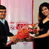 Vanya Mishra, the winner, receives a bouquet of flowers from Sanjay Singal at the National Finale of the Dabur Gulabari Miss Rose Glow 2011 Contest in Delhi.