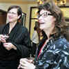 Susan Gregson (L) and Heather Crudin during a performance by Indo-Canadian singer Kiran Ahluwalia at the home of the high commissioner of Canada in India, Stewart G Beck, and his wife Brenda. (BCCL/Nitin Malik)