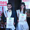 Sanya Sehgal (National Institute of Fashion Technology) - winner and Raghav Luthra (Shahid Sukhdev College of Business Studies) - winner with Charu Sharma, Oppo branding assistant during the grand finale of Oppo Delhi Times Fresh Face 2016 held in the city - Photogallery