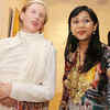 Arti and Neena share a light moment at Payal Tagore's art exhibition in Delhi.  (BCCL/Nitin Malik)