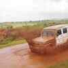 A jeep makes its way through a muddy water path during the offbeat drive 'The Great Escape' which was organised by Mahindra's.  (BCCL)