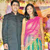 Eknath Reddy and Pragnya pose for the camera during their wedding reception held in Hyderabad. (BCCL)