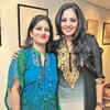 Harini and Sandhya pose Artist Peeli Shri Murugan's art exhibition, hosted by his daughters, in Hyderabad. (BCCL/KVS Giri)