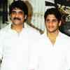 Nagarjuna and Nagachaitanya at the success meet of the movie 'Josh' at its movie office.