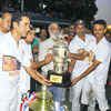 (L-R) Ransher Singh, Tarun Bilwal, Vishal Singh and Raghav Pratap Singh receive the trophy from erstwhile Udaipur royal Arvind Singh Mewar (centre) pose with trophy during a polo match, held at Rajasthan Polo Club in the city. (BCCL/Dinesh Meena) /events/jaipur/polo-match-rajasthan-polo-club/eventshow/47190909.cms04