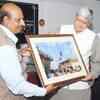 Governor Gopal Krishna Gandhi is presented with a frame by one of the Dignitaries during the photo exhibition 'Spirit Of Independent India' at the 20th National Photo Contest '07 at Kolkata Information centre on Monday, June 23, 2008 - Photogallery