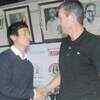 Baichung Bhutia and Morgan during a press meet at East Bengal Club Tent on January 24, 2011 - Photogallery