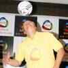 Branco tosses the soccer ball with his head at a press meet at a city hotel. (BCCL/Krishna Roy)