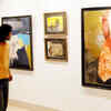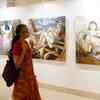 A visitor looks at the paintings on display at the exhibition 'Colour 'n' Clay' at the Academy Of Fine Arts on July 31, 2009. (BCCL/Subhrajit Chandra)