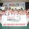 The dignitaries pose with the team of the 16 footballers going to Brazil at the event 'Football Champs' at the City hotel - Photogallery