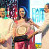 Bollywood actress Hema Malini receives the 21st PC Chandra Puraskaar from Subrata Mukherjee, state rural and development minister, and group chairman Binay Kumar Chandra during a ceremony, held in Kolkata, on April 21, 2013. (BCCL) /events/kolkata/hema-malini-felicitated/eventshow/19673179.cms02