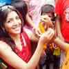 Locket Chatterjee ties Rakhi to the kids of SOS Childrens Village while celebrating 'Raksha Bandhan' on August 05, 2009.  (BCCL/Arijit Dutta)