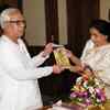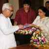 Chief Minister Buddhadeb Bhattacharjee and singer Asha Bhosle greet each other during the launch of audio CD of singer Suchitra Mitra in Kolkata.  (BCCL/Sajal Mukherjee)