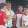 Goutam Mohan Chakborty and Romario hold a jersey at the press meet of 'Kolkata Police Friendship Cup' which was held at Police Athletic Club grounds on July 20, 2010 - Photogallery