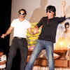 Actors Shah Rukh Khan and Arjun Rampal (L) dance together as they promote their much-awaited film 'Ra.One' in Kolkata. (BCCL/Krishna Roy)