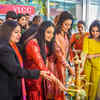 Amruta Fadnavis and Vandana Luthra lit the lamp during the launch of Art Wellness Centre of VLCC at Vikhroli in Mumbai. (BCCL/Prathamesh Bandekar)