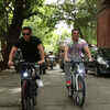 Salman Khan and Sohail Khan hit the road during the launch of Being Human E-Cycles launch in Mumbai on June 5, 2017. (Photo: Viral Bhayani)