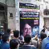 Fans and media, who gathered outside Shashi Kapoor's home in Peshawar, had put huge posters of the actor. (Photo: Twitter)