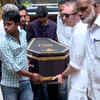 Jamie Alter with his friends and relatives carries the coffin of his father Tom Alter during the funeral in Mumbai.