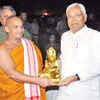 Vishu Budhanand and Nitish Kumar pose for a photo during the launch of a laser show, depicting the history of Bihar, at Buddha Smriti Park in Patna. (BCCL)