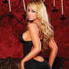 A model looks beautiful in black lace thong and stockings during the photoshoot.