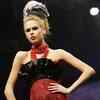 A model displays a dress by the Emirati designer Mona al-Mansoury at the Wedding Fair 2009 at Beirut on February 5, 2009. (AFP/Joseph Barrak)
