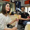 Kareena Kapoor speaks to the listener while Imran Khan looks on during the promotion of the movie Gori Tere Pyaar Mein, held at Radio City, in Mumbai, on October 23, 2013. (Pic: Viral Bhayani)