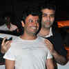 Vikas Bahl and Karan Johar pose as they arrive for the wrap-up party of movie Bombay Velvet, held in Mumbai, on April 16, 2014. (Pic: Viral Bhayani) See more of :