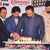 Shah Rukh Khan, Rohit Shetty and Nikitin Dheer cut the cake during the success party of Chennai Express, held in Mumbai, on November 6, 2013. (Pic: Viral Bhayani)