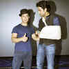 Aamir Khan with co-star Abhishek Bachchan during the trailer launch of the movie Dhoom 3, held in Mumbai, on October 30, 2013. (Pic: Viral Bhayani)