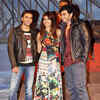 (L-R) Arjun Kapoor, Priyanka Chopra, director Ali Abbas Zafar and Ranveer Singh at the music launch of the movie Gunday, held at Yashraj Studio, in Mumbai, on January 7, 2014. (Pic: Viral Bhayani)