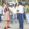 Sonam Kapoor, dressed as a school girl, gves a successful shot for the film ‘Raanjhanaa’ with co-star Dhanush, also dressed in a school uniform. (BCCL/Unmesh Pandey) /movies/bollywood/raanjhanaa-on-the-sets/eventshow/16294650.cms02