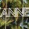 A palm tree is seen behind the logo of the 'Cannes Film Festival' near the Festival Palace on May 10, 2010 during the preparations for the '63rd Cannes Film Festival'.