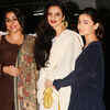 Veteran actress Rekha flanked by Vidya Balan and Alia Bhatt during the screening of Bollywood film Begum Jaan in Mumbai.(Pic: Viral Bhayani) See more of :
