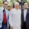 Union HRD Minister Kapil Sibal with Economist & management guru Professor Arindam Chaudhuri and actor Rishi Kapoor after a premiere of latter's new film 'Do Dooni Char' in New Delhi. (PTI)