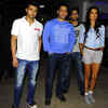 O Teri cast, Pukit Samrat, Sarah Jane Dias and Bilal Amrohi pose for a photo during its special screening, held at Sunny Deol's villa in Juhu, on March 25, 2014. (BCCL/Anuja Gupta)See more of :