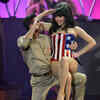 Model Claire Sinclair performs as she rides on the shoulders of dancer Ryan Kelsey during the premiere of the show 'Pin Up' at the Stratosphere Casino Hotel on April 29, 2013 in Las Vegas, Nevada. /movies/premiere/pin-up-premiere/eventshow/19820954.cms07